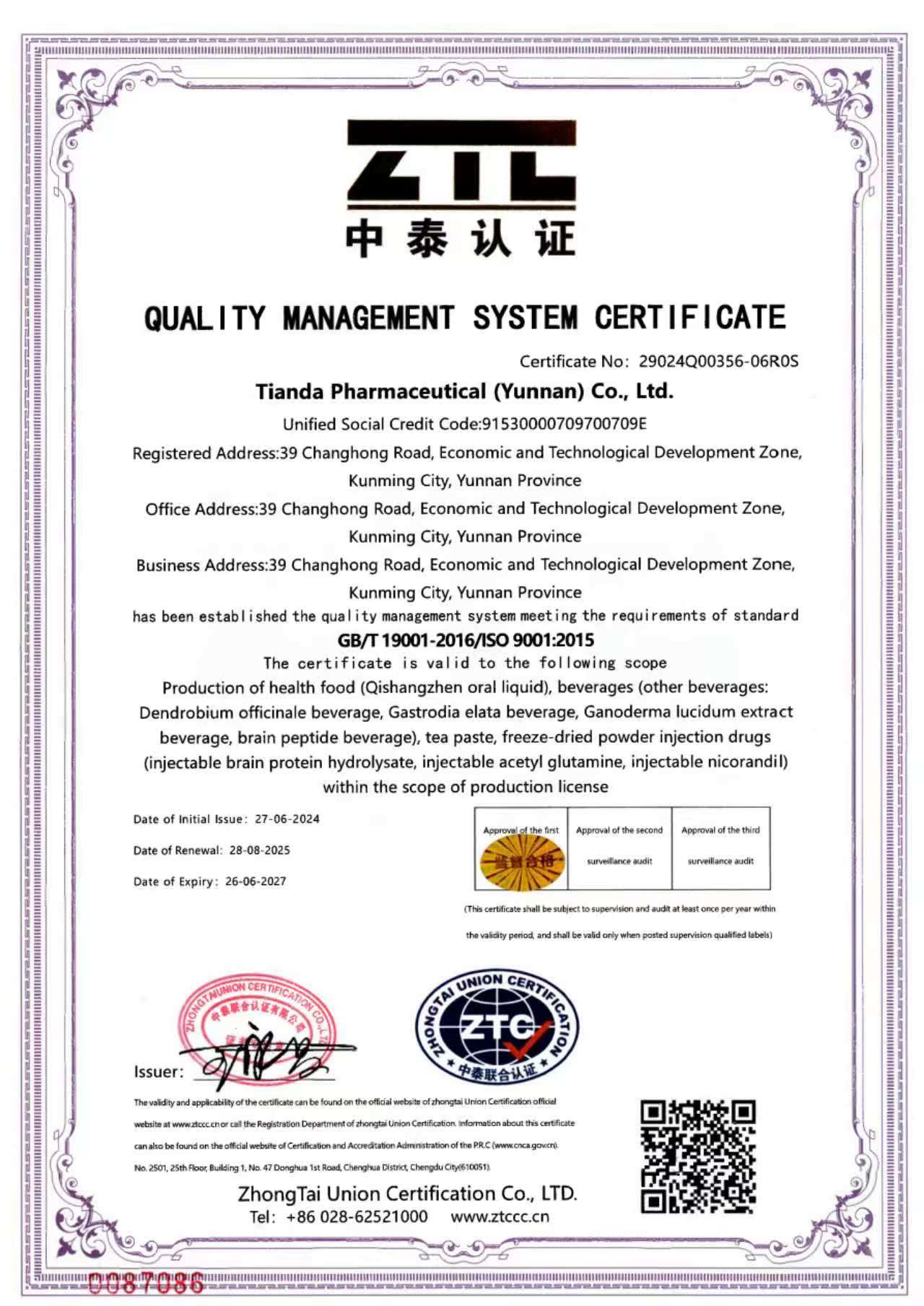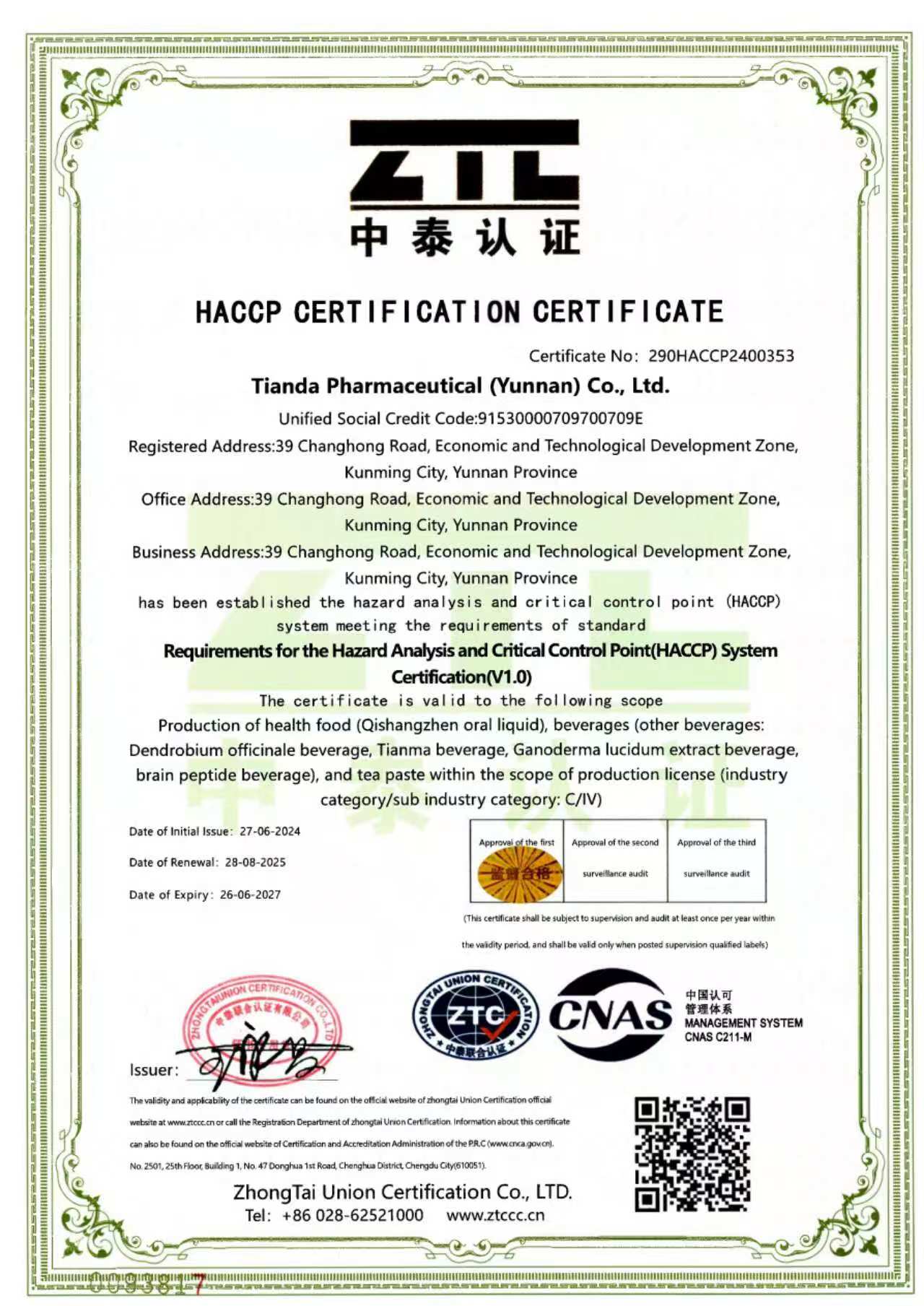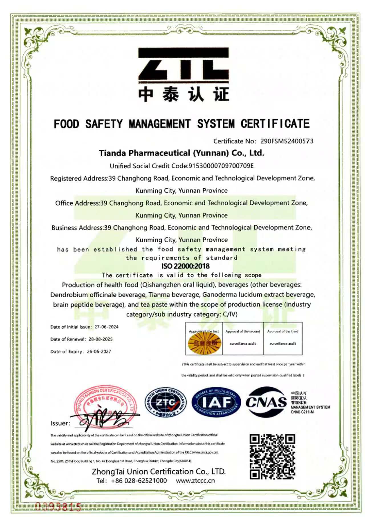 High-tech EnterpriseAward Organization: Department of Science and Technology of Yunnan Province/ Department of Finance of Yunnan Province/ State Taxation Bureau of Yunnan Province/ Local Taxation Bureau of Yunnan ProvinceValidity: 3 Years