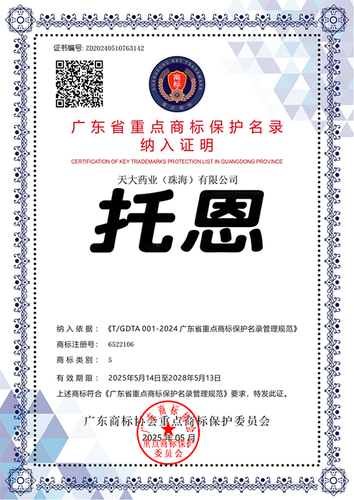 6月11日,天大医药科技(珠海)有限公司获得中华人民共和国国家药品监督管理局签发的关于 “布洛芬混悬液” 的药品注册证书。